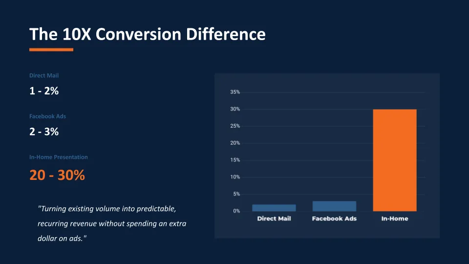 Understand how service calls can be turned into predictable recurring revenue using a simple in-home presentation system.
