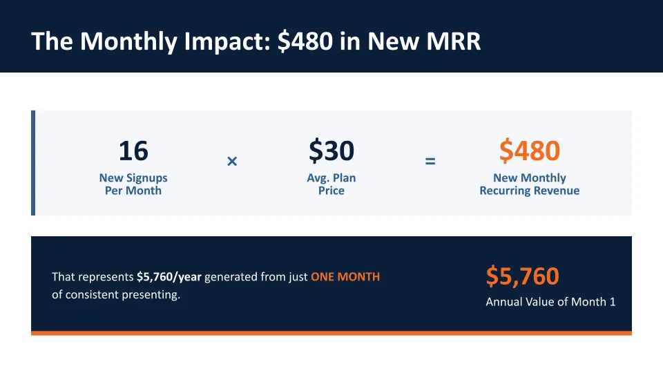 That's $5,760/year from ONE MONTH of consistent presenting.